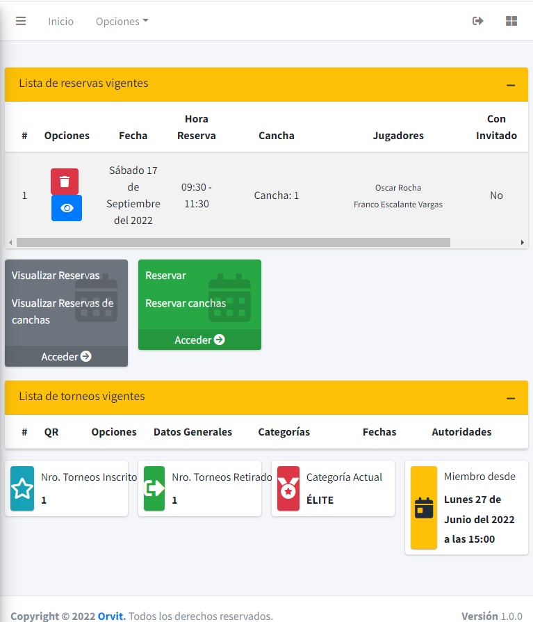 - Cada jugador puede reservar canchas de acuerdo a disponibilidad.